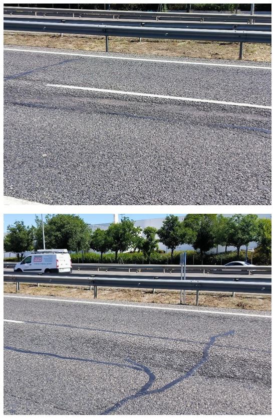 • Reposición del firme mediante la extensión de una capa de 3 cm de espesor medio de una mezcla bituminosa en caliente tipo BBTM 11B (antiguo M-10) a base de betún modificado con polímeros PMB 45/80-65.