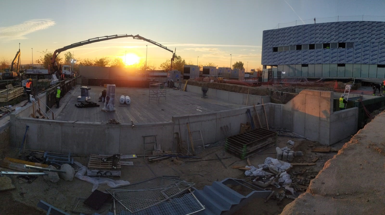 Realización de un nuevo hospital de contingencia, como respuesta a la necesidad detectada tras la pandemia del virus COVID-19, la ubicación del Hospital en una parcela de la Ciudad de la Justicia. El hospital se organiza en tres pabellones separados mediante patios y áreas comunes que acentúan la condición híbrida del edificio. Desde el exterior, el conjunto muestra un perfil bajo y se muestra como un bloque liviano, sin intención de imponerse sobre otros hitos urbanos del entorno. Una fachada compuesta por paneles metálicos sigue el ritmo pautado por la estructura y revela un cambiante aspecto según la incidencia del sol. La organización del hospital se basa en una clara diferenciación de usos. Cada pabellón incorpora dos bandas de programas complementarios y salas técnicas que flanquean el espacio asistencial, donde se instalan los módulos de enfermería, cuidados intermedios e intensivos.