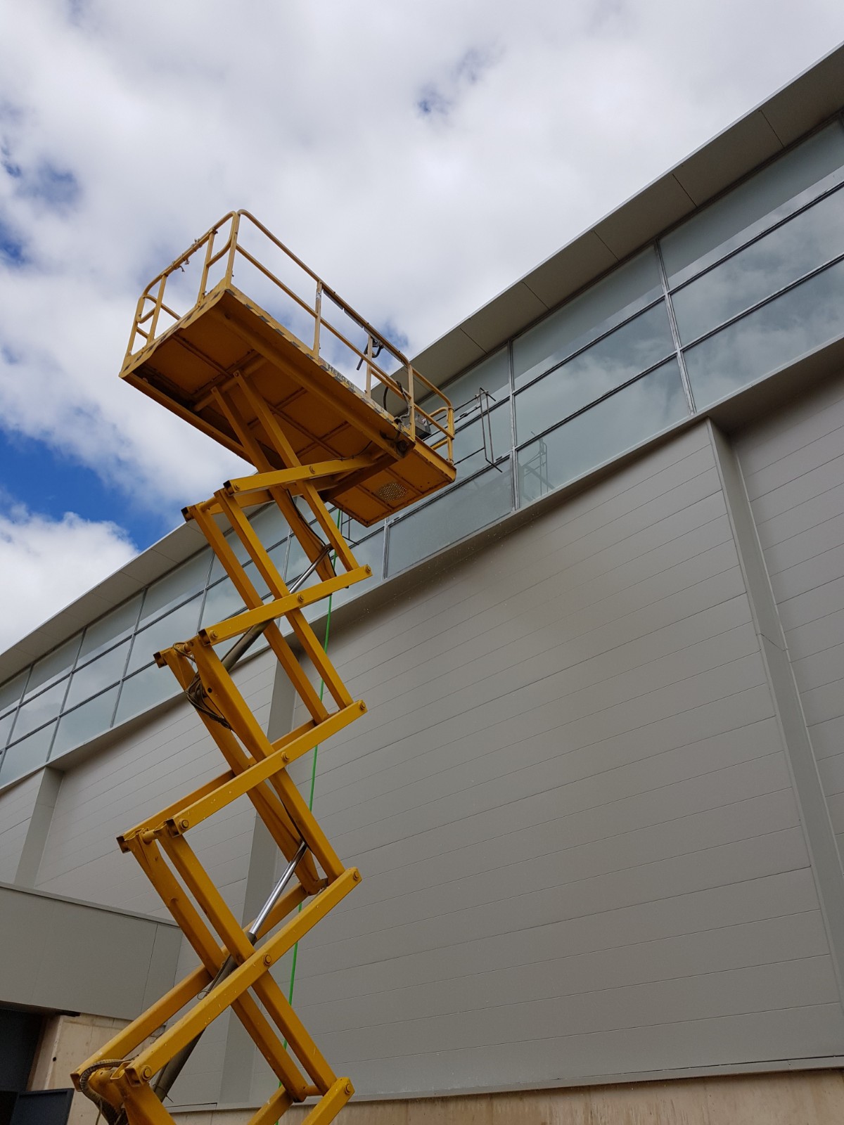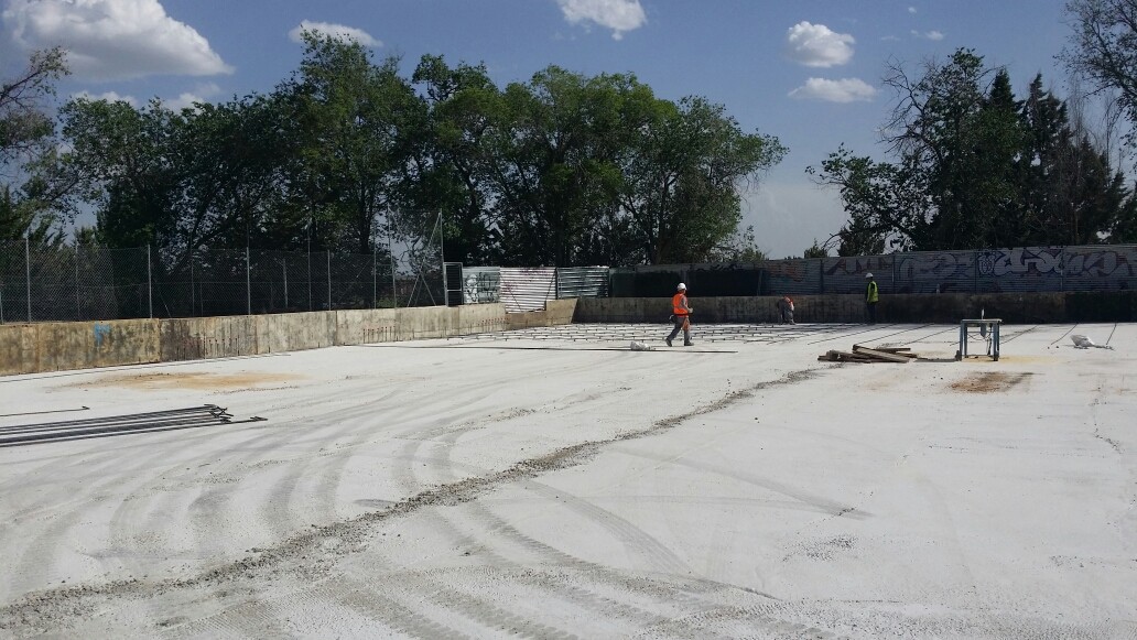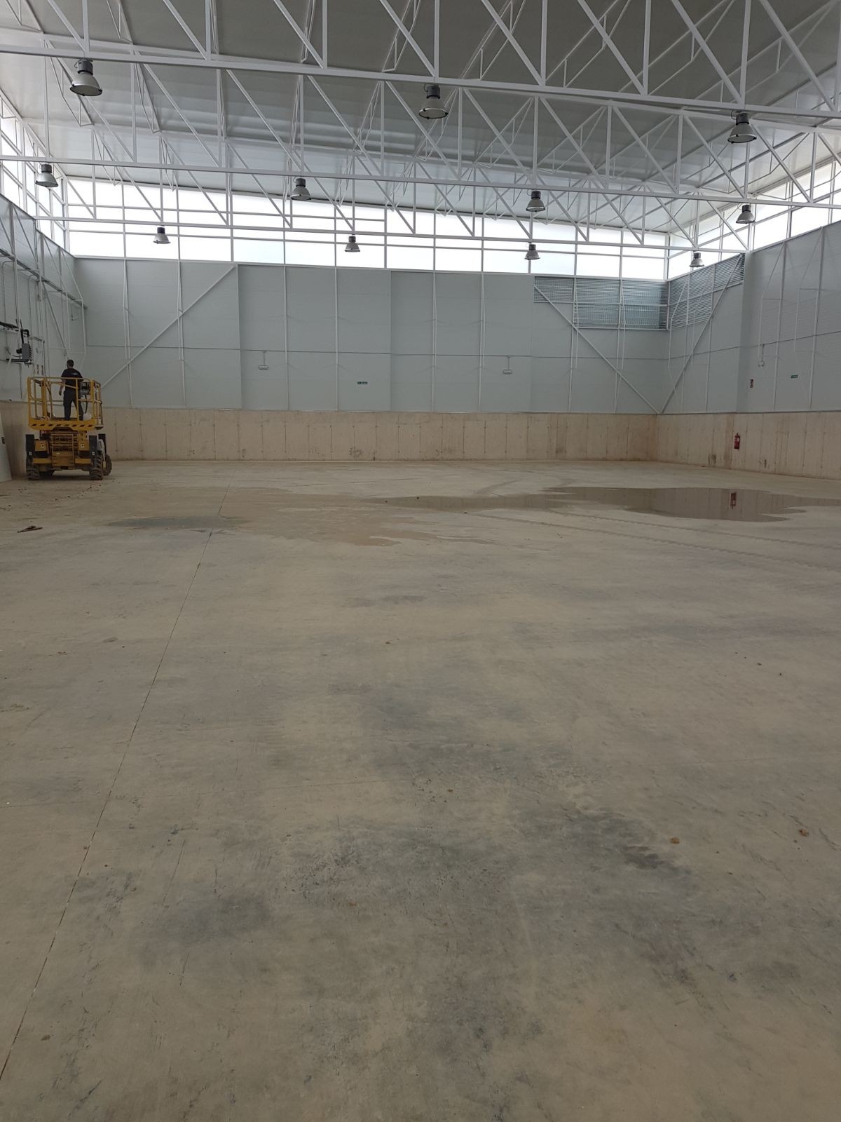 Edificio singular dentro del conjunto urbano, con fácil acceso y comunicación, funcionalidad, necesidades de mantenimiento mínimas para uso polivalente. El conjunto se compone de dos volúmenes claramente diferenciados. El principal contiene el espacio donde se ubica la pista polideportiva, conformado a base de chapa pre lacada y vidrio, con una cubierta inclinada a un agua, también se ha creado un tipo de cerramiento, que cuenta con una ligera inclinación que mejorará la acústica del edificio. El volumen complementario contiene, fundamentalmente, el bloque de vestuarios y está ejecutado en hormigón visto, chapa pre lacada y cubierta plana.
