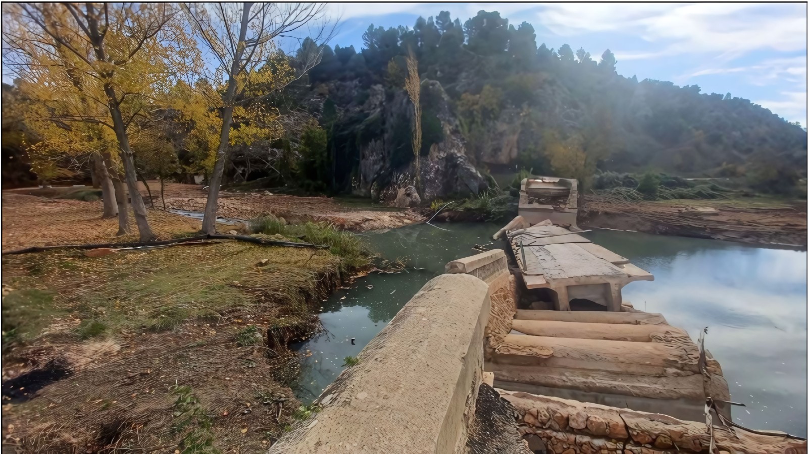 El puente original colapsó como consecuencia de las intensas lluvias e inundaciones registradas en octubre de 2024, lo que provocó la interrupción total del tráfico en este tramo de la red viaria provincial.