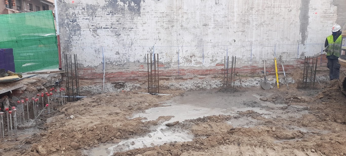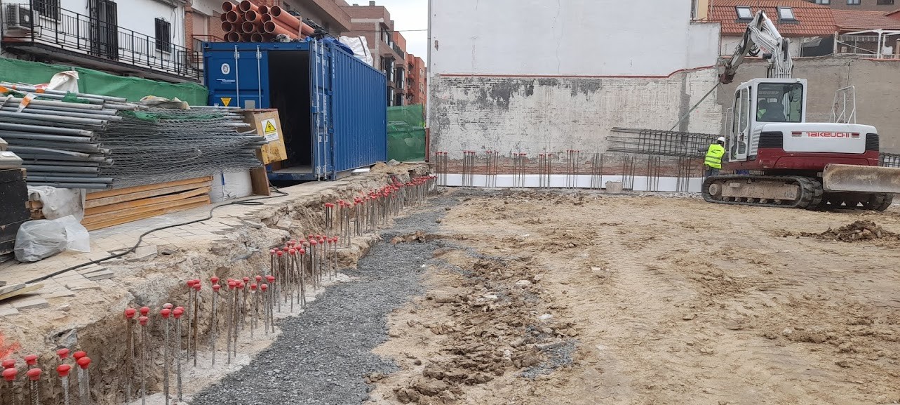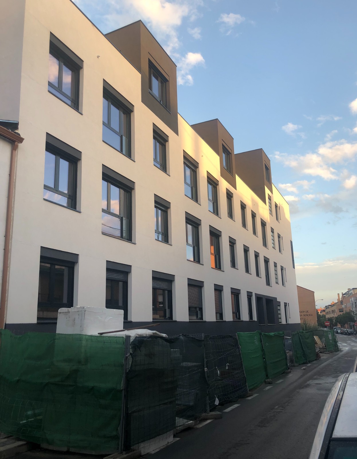 Construcción de edificio residencial en bloque viviendas, garajes, trasteros y piscina, se trata de un edificio entre medianeras de tres plantas y ático a lo largo de la calle de Alar del Rey y cuatro plantas y ático dando a la calle Algemesí, destinado al uso Residencial Vivienda Multifamiliar con 23 viviendas repartidas en dos núcleos de escalera y 2 plantas bajo rasante destinado a trasteros y garaje. Al edificio se accede por un soportal y desde un espacio interior a 2 portales que se comunicas con los núcleos de escalera.