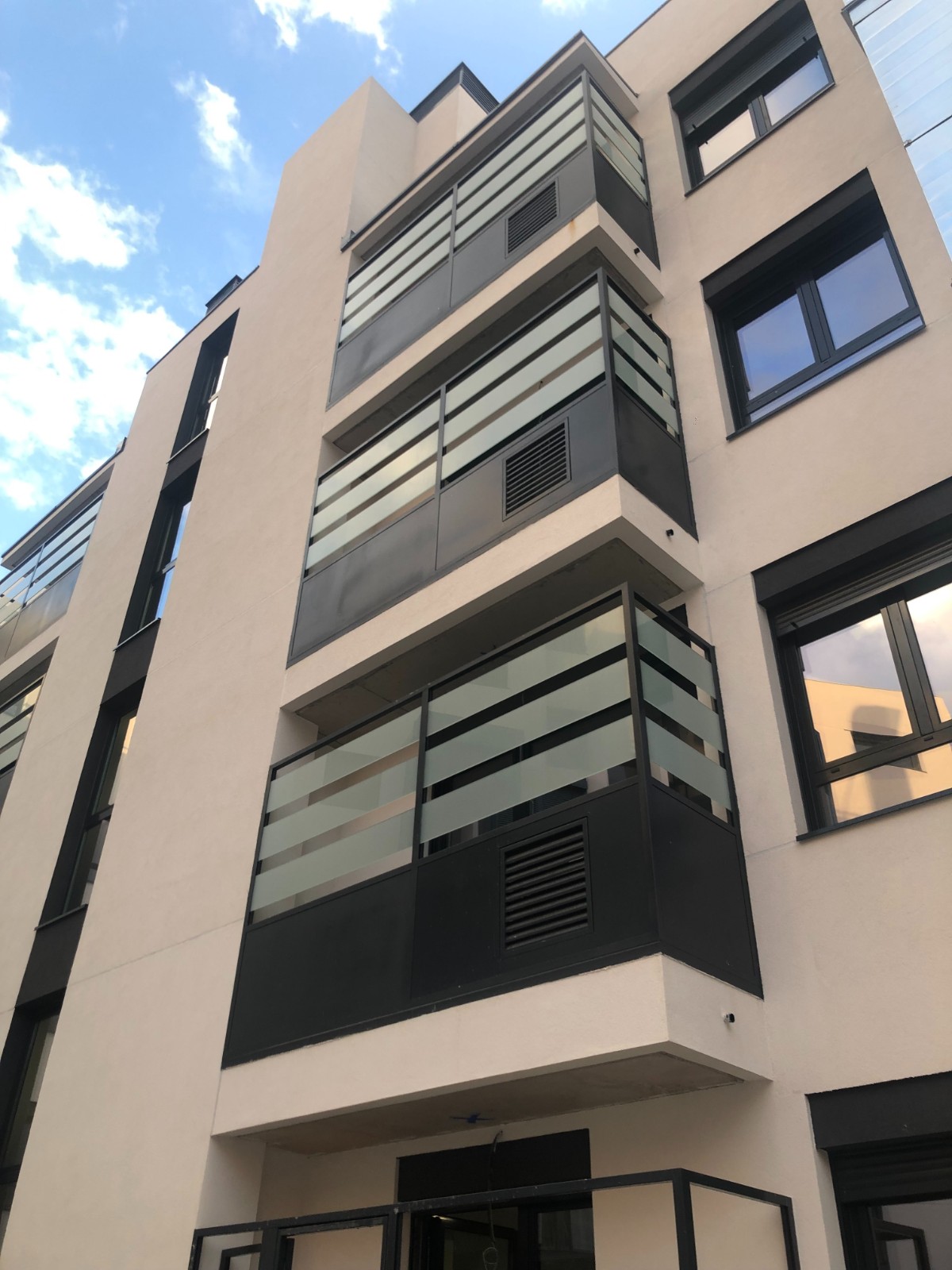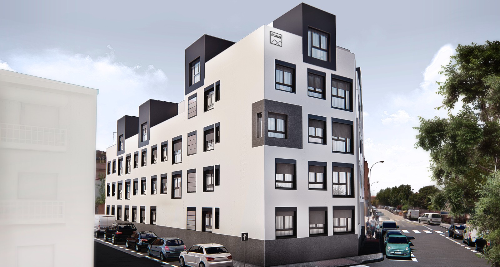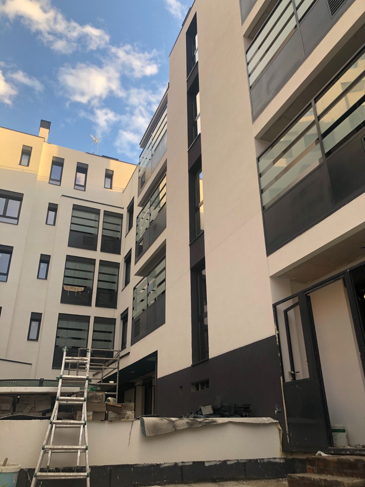 Construcción de edificio residencial en bloque viviendas, garajes, trasteros y piscina, se trata de un edificio entre medianeras de tres plantas y ático a lo largo de la calle de Alar del Rey y cuatro plantas y ático dando a la calle Algemesí, destinado al uso Residencial Vivienda Multifamiliar con 23 viviendas repartidas en dos núcleos de escalera y 2 plantas bajo rasante destinado a trasteros y garaje. Al edificio se accede por un soportal y desde un espacio interior a 2 portales que se comunicas con los núcleos de escalera.