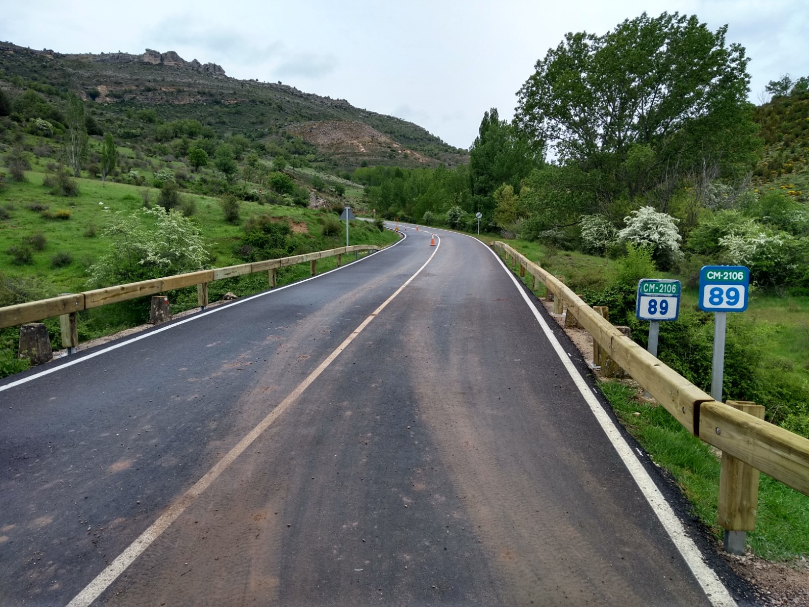 Se han diferenciado 5 tramos de la CM-2106 en el que se realizan trabajos de refuerzo y ensanche. Los trabajos se basan en el saneo de blandones, fresado y reposición de mezcla bituminosa en caliente, ensanche de la calzada manteniendo trazado en planta, limpieza y ampliación de O.F, acondicionamiento de accesos, señalización horizontal y vertical, perfilado de cunetas y la instalación de barrera de seguridad mixta acero-madera.